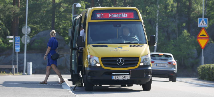 - Boka din resa senast 1 timme i förväg och bli upphämtad på valfri plats inom ett ring-område. Ring-området står angivet på tidtabellen till linje 601 och 602.